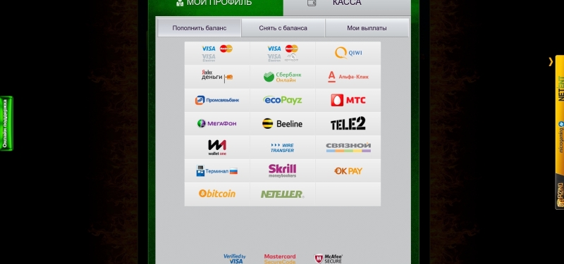 👑 В казино пополнить депозит или вывести деньги со счета можно используя платежные системы МастерКард, Яндекс Деньги, Киви, Мобильные операторы и иные.